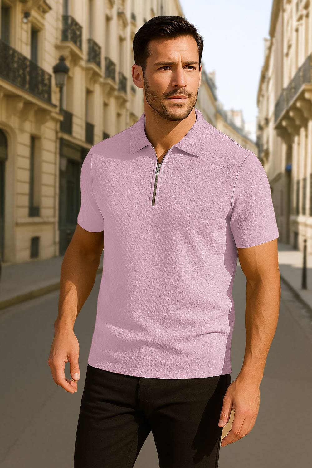Designed with a modern twist, the zipper collar detail adds a trendy edge to the classic polo look. The fabric is soft and stretchable, offering all-day comfort and a flattering fit. Its self-design texture brings subtle sophistication, while the vibrant color options make sure you stand out effortlessly.