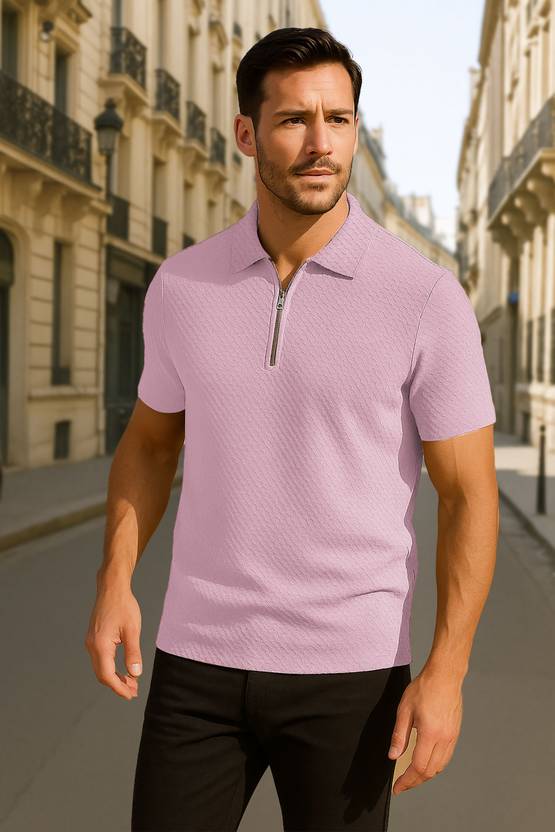 Elevate your casual wardrobe with our Self-Design Polo T-Shirt with Zipper, crafted for men who value both style and comfort. Available in Black, Maroon, Pink, Brown, and Beige, this versatile polo is perfect for everyday wear, weekend outings, or a casual evening out.