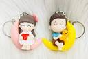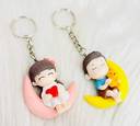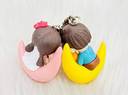 Cute Love Valentine's Keyring Sitting On A Moon Couple Keychain for Boys Girls