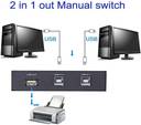 TERABYTE TV-out Cable Printer USB Switch 2 Ports USB 2.0 Switch Box for 2 PC Share 1 USB Printer (Black, For Computer)