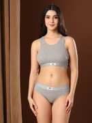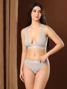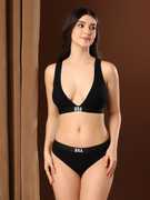Rupretoz Elegant Embrodred Bra with matching panty, is padded with soft pads which enhances the shape and it has underwire support too. It has Print on cups with cute bow in centre that complements its look.