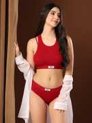 Details & Fabric: Premium Quality Bra Panty Set. This bra & Panty Set is made of Cotton Lycra Blend. Material: Soft and fine quality fabric with solid work.The Combination Of Soft Feel Fabric With Regular Low Waist Panty , this product will fit in your wardrobe, this wedding set is good combination of comfort and fashion this is the perfect lingerie set which womens wants