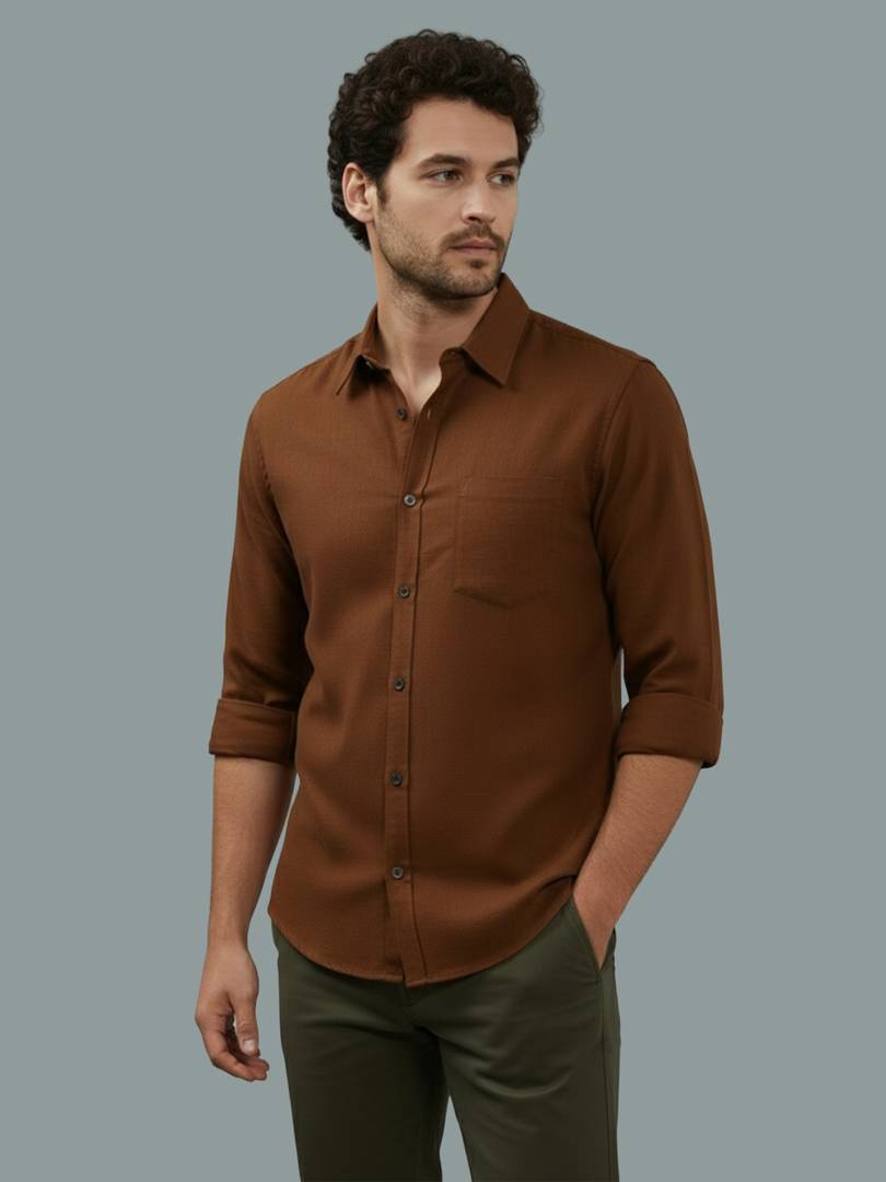 FireFish Men Slim Fit Solid Spread Collar Casual Shirt