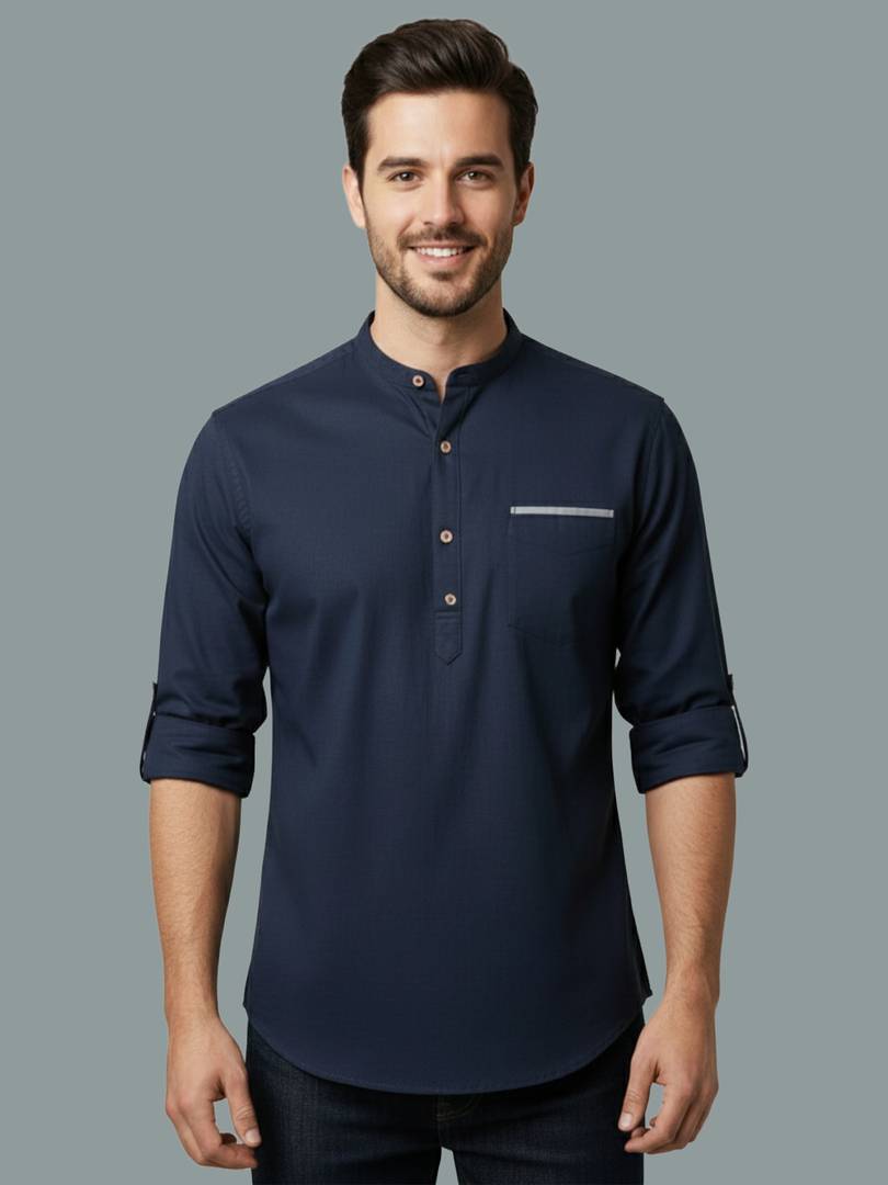 This Cotton Blend Short Kurta is perfect for men who value style and comfort. Its versatile design makes it ideal for any occasion—festivals, parties, or casual outings. Product Details 📋 👨‍🦰 Gender: Men 🎨 Pattern: Solid 🧵 Design Type: Plain 🔘 Closure: Button 👕 Sleeve: Half Sleeve ⬆️ Waist Rise: Mid-Rise 🪡 Hemline: Curved 🌿 Fabric: Cotton Blend 📏 Product Length: Short 📦 Material & Care 🧺 Fabric: Cotton Blend Wash: Suitable for hand wash and machine wash. How to Style 🎯 Pair it with dark-wash denim or linen trousers for a casual look. Dress it up with a pair of churidar or slim-fit pants for festive occasions. Add leather sandals or loafers and a wristwatch for a classy finish. Regular the sleeves for a relaxed vibe during daytime events. This shirt kurta seamlessly blends traditional elegance with modern styling, making it a wardrobe essential for every man! 👌