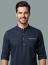 UNIFAV Men Solid Cotton Blend A-line Kurta  (Dark Blue)