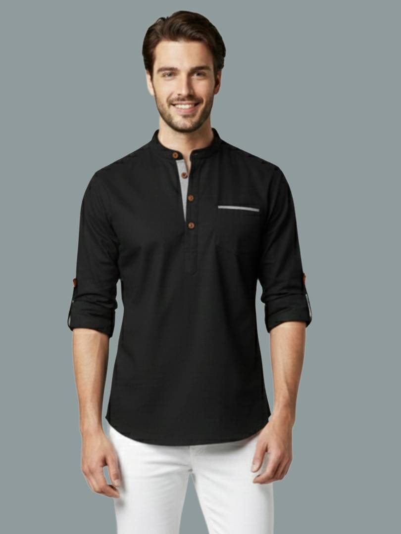 This Cotton Blend Short Kurta is perfect for men who value style and comfort. Its versatile design makes it ideal for any occasion—festivals, parties, or casual outings. Product Details 📋 👨‍🦰 Gender: Men 🎨 Pattern: Solid 🧵 Design Type: Plain 🔘 Closure: Button 👕 Sleeve: Half Sleeve ⬆️ Waist Rise: Mid-Rise 🪡 Hemline: Curved 🌿 Fabric: Cotton Blend 📏 Product Length: Short 📦 Material & Care 🧺 Fabric: Cotton Blend Wash: Suitable for hand wash and machine wash. How to Style 🎯 Pair it with dark-wash denim or linen trousers for a casual look. Dress it up with a pair of churidar or slim-fit pants for festive occasions. Add leather sandals or loafers and a wristwatch for a classy finish. Regular the sleeves for a relaxed vibe during daytime events. This shirt kurta seamlessly blends traditional elegance with modern styling, making it a wardrobe essential for every man! 👌