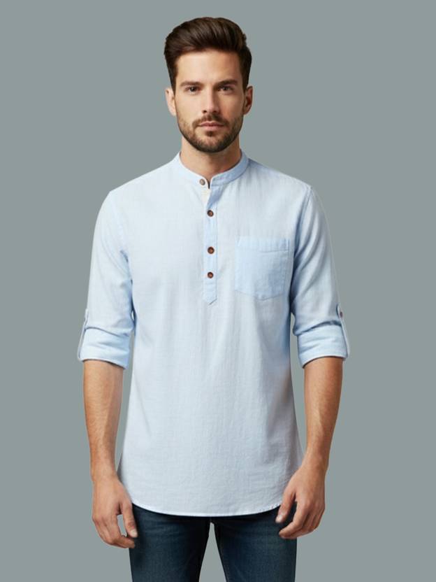 UNIFAV Men Solid A-line Kurta (Light Blue)