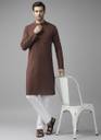 Elevate your ethnic wear collection with this sophisticated men's cotton kurta in a refreshing light green hue. The design features a contemporary mandarin collar and full-length sleeves, striking the perfect balance between traditional style and modern aesthetics. Crafted from pure cotton fabric, this kurta offers exceptional comfort and breathability, making it suitable for both casual outings and festive occasions. The straight cut silhouette paired with white trousers creates a refined look that's both elegant and versatile. The subtle texture of the fabric adds depth to the solid colour, while the front button placket allows for easy wear. This kurta can be styled with traditional bottoms or paired with modern alternatives like denims for a fusion look. The lightweight nature of the garment makes it an excellent choice for various seasons. For best results, gentle hand wash is recommended to maintain the kurta's pristine appearance.