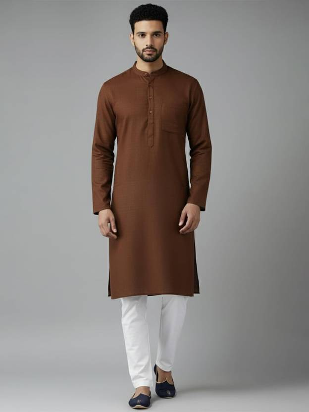 Yugnik Men Solid Pure Cotton Straight Kurta (Gold)