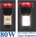 100 Watt Laser LED torch light. With Five Mode: 1St for low light & 2nd For 2000 Meters High Range Light 3rd For Blinker 4th For Side Law Light 5th For Side Extra Bright Light. Super High Quality With Classy Look. Strong ABS Water Proof Body Look Brighten Your Life Everyday. Enjoy the performance of Jumbo torch light for high range. Power Source: Battery, Rechargeable. Support Solar Charging. 80 Watt Dual COB As A Side Light For More Brightness. Wall Mountable.
