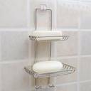 Tesla exim Double Layer Soap Dish Storage Organizer Holder and Stainless Steel Hook Self-Adhesive Stainless Steel Waterproof Kitchen Bathroom Soaps Storage Rack with Hook for Home (Silver)