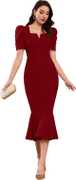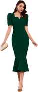 TESSAVEGAS Women Bodycon Green Below Knee Dress