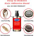 Dual Application Design: Choose between a mist pump for easy application or a drip nozzle for precise targeting. Apply on the bonding area, wait for a minute, and gently remove your wig or extensions.