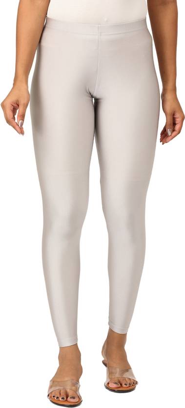 Add a touch of glamour to your wardrobe with our Silver Shimmer Ankle Length Leggings. Designed to catch the light beautifully, these leggings are made from a premium nylon-elastane blend that offers a soft, second-skin feel and exceptional stretch. The high-waist style ensures a flattering fit while providing support, making them ideal for both active and leisure wear. Perfect for parties, festive occasions, or adding a sparkle to your everyday outfits. (