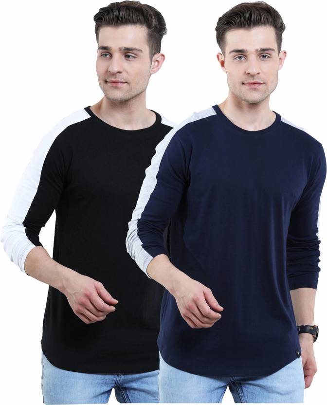 Texman Pack of 2 TEXMAN Mens Regular Fit Fullsleeve Cotton Tshirt - Pack of 2 Men Solid Round Neck Pure Cotton Black T-Shirt