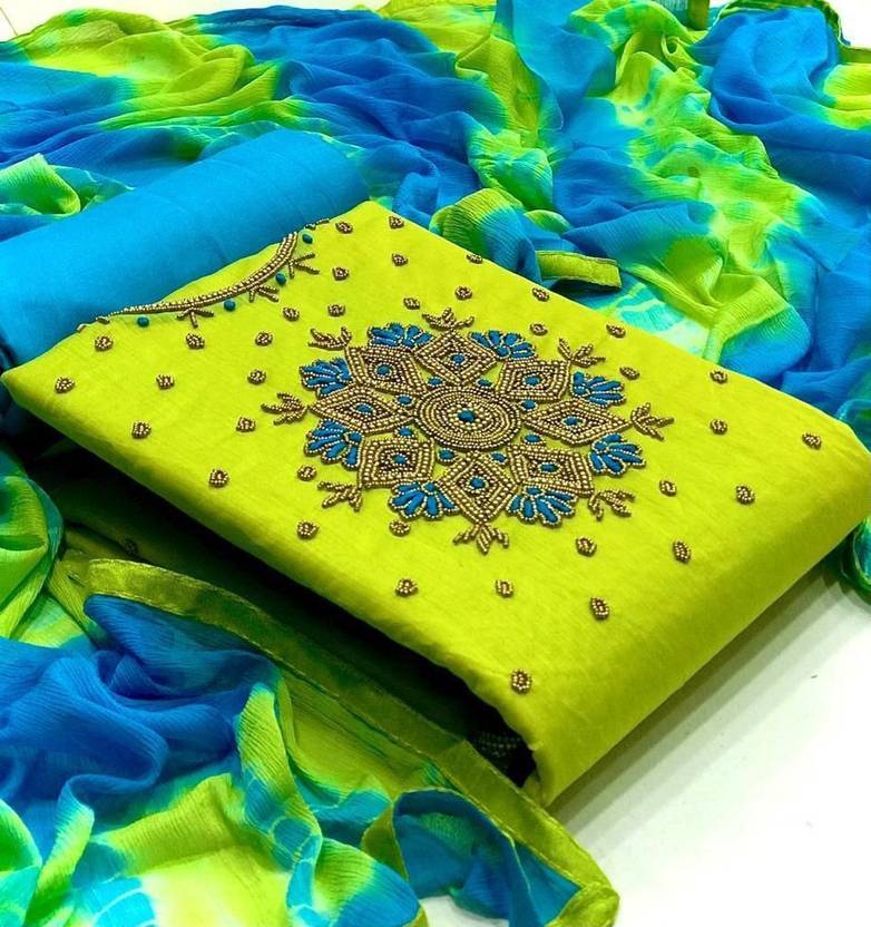 Unstitched Chanderi Salwar Suit Material Embroidered