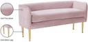 TFS Armrest & Backrest Upholstered Bench with Gold Finish Legs 3 Seater Solid Wood Settee (Finish Color -Pink, Pre-assembled)