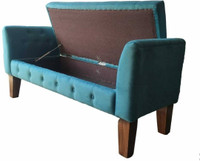 TFS Luxurious Bench settee with Storage Box 2 seatter For Bedroom, Living,office Solid Wood Settee (Finish Color -LIte Blue, Pre-assembled)