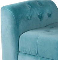 Built with a sturdy, solid plywood frame, foam padding, and durable fabric, this settee is designed for long-lasting use. Its frame is reinforced for strength, while the curved top is padded for extra comfort. Wrapped in soft velvet upholstery and adorned with nail-head trim, this settee combines durability with style. The finish on the legs completes the look, adding to its lasting appeal.