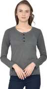 Faizaan Women Solid Round Neck Cotton Blend Grey T-Shirt