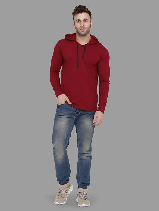 tfurnish Men Solid Hooded Neck Cotton Blend Maroon T-Shirt