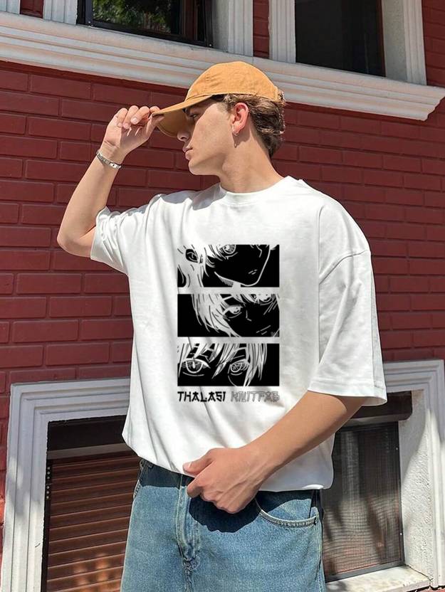 Introducing the THREE Anime Oversized Baggy Fit T-Shirt, designed with the latest Anime trend in mind. Made from premium 100% cotton fabric, this white t-shirt offers unbeatable comfort and durability. The oversized baggy fit adds a stylish and relaxed look, perfect for casual and regular wear. It features an eye-catching Anime print on the chest, showcasing your love for Anime. With its round neck and half sleeves, it provides a classic and versatile style. Whether you're heading to a party or hitting the gym, this t-shirt is a must-have. Elevate your wardrobe with this longline, loose-fitting, and stylish tee that combines comfort and trend effortlessly. Upgrade your collection with anime-inspired fashion.
