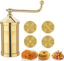 Experience the joy of homemade snacks with the Thangam Classic Pure Brass Sev Sancha Achu Murukku Maker. Its versatility, durability, and ease of use make it an essential tool for every Indian kitchen. Craft authentic Indian snacks with our premium Brass Sev Sancha! Perfect for making crispy murukku, soft idiyappam, bhujia and delicious sev at home. Traditional Indian cookware, snack-making equipment, brass kitchen tools. Making crispy sev for chaat and other snacks. Preparing murukku for festivals and gatherings. Creating soft idiyappam for South Indian meals. Crafting chakli, gathiya, and other traditional snacks. Exploring various Indian farsan recipes. At the heart of the Thangam Pure Brass Murukku Maker Machine is its high-quality brass construction. Unlike flimsy alternatives, this machine is built to last, providing you with the sturdy performance you need to churn out batch after batch of crispy, delicious snacks. The machine’s durability ensures that it resists rust, while its classic brass finish adds a timeless elegance to your kitchen. Unlike stainless steel or cheap metals, our brass achu murukku maker machine delivers a rich, authentic flavor that elevates your homemade treats. With every press, you’ll achieve the perfect texture and taste that make South Indian snacks so beloved. Equipped with 6 different jalis, the possibilities are endless. Create everything from murukku, chakli, sevsancha, and gathiya to noodles and more with ease. Each jali is precision-engineered to help you craft perfect traditional snacks, no matter the occasion. Whether you’re making crunchy ribbon pakoda for tea-time or indulging in a snack-making marathon during festival season, the Ribbon Pakoda Maker Machine has you covered. And don't stop there—this machine doubles as a cookies snack maker and kitchen dough press, letting you experiment with sweet and savory recipes alike. The Thangam Murukku Maker doesn’t just bring authenticity to your kitchen—it opens up a world of culinary creativity. We know your time is precious. That’s why our brass sevanazhi maker is designed with simplicity in mind. The ergonomic handle makes it incredibly easy to press, ensuring you get perfectly shaped snacks every time without the struggle. Plus, this lightweight and compact machine is ideal for home kitchens of any size. Once you're done, cleaning up is a breeze. The Idiyappam maker machine fully dismantles, so every part is easy to reach, rinse, and store for next time. And because it’s made from pure brass, it maintains its luster without the need for extra maintenance.