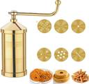 Experience the joy of homemade snacks with the Thangam Classic Pure Brass Sev Sancha Achu Murukku Maker. Its versatility, durability, and ease of use make it an essential tool for every Indian kitchen. Craft authentic Indian snacks with our premium Brass Sev Sancha! Perfect for making crispy murukku, soft idiyappam, bhujia and delicious sev at home. Traditional Indian cookware, snack-making equipment, brass kitchen tools. Making crispy sev for chaat and other snacks. Preparing murukku for festivals and gatherings. Creating soft idiyappam for South Indian meals. Crafting chakli, gathiya, and other traditional snacks. Exploring various Indian farsan recipes. At the heart of the Thangam Pure Brass Murukku Maker Machine is its high-quality brass construction. Unlike flimsy alternatives, this machine is built to last, providing you with the sturdy performance you need to churn out batch after batch of crispy, delicious snacks. The machine’s durability ensures that it resists rust, while its classic brass finish adds a timeless elegance to your kitchen. Unlike stainless steel or cheap metals, our brass achu murukku maker machine delivers a rich, authentic flavor that elevates your homemade treats. With every press, you’ll achieve the perfect texture and taste that make South Indian snacks so beloved. Equipped with 6 different jalis, the possibilities are endless. Create everything from murukku, chakli, sevsancha, and gathiya to noodles and more with ease. Each jali is precision-engineered to help you craft perfect traditional snacks, no matter the occasion. Whether you’re making crunchy ribbon pakoda for tea-time or indulging in a snack-making marathon during festival season, the Ribbon Pakoda Maker Machine has you covered. And don't stop there—this machine doubles as a cookies snack maker and kitchen dough press, letting you experiment with sweet and savory recipes alike. The Thangam Murukku Maker doesn’t just bring authenticity to your kitchen—it opens up a world of culinary creativity. We know your time is precious. That’s why our brass sevanazhi maker is designed with simplicity in mind. The ergonomic handle makes it incredibly easy to press, ensuring you get perfectly shaped snacks every time without the struggle. Plus, this lightweight and compact machine is ideal for home kitchens of any size. Once you're done, cleaning up is a breeze. The Idiyappam maker machine fully dismantles, so every part is easy to reach, rinse, and store for next time. And because it’s made from pure brass, it maintains its luster without the need for extra maintenance.
