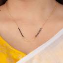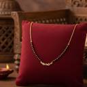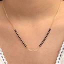 Experience a perfect blend of elegance and modern charm with this 18K Gold Plated Twisted Design Black Beads Tanmaniya Mangalsutra Necklace Chain for Women. Designed to complement both traditional and contemporary looks, this mangalsutra features a stylish twisted bar pendant crafted with smooth precision and plated with high-quality 18K gold for a rich and long-lasting shine.The necklace is paired with a single-line black beads chain, symbolising the beauty and strength of marital tradition. Its lightweight construction ensures effortless comfort, making it ideal for daily wear, office fashion, festive occasions, and gifting.Crafted with attention to detail, this Tanmaniya Mangalsutra is the perfect accessory to enhance your everyday style while keeping tradition close to your heart.
