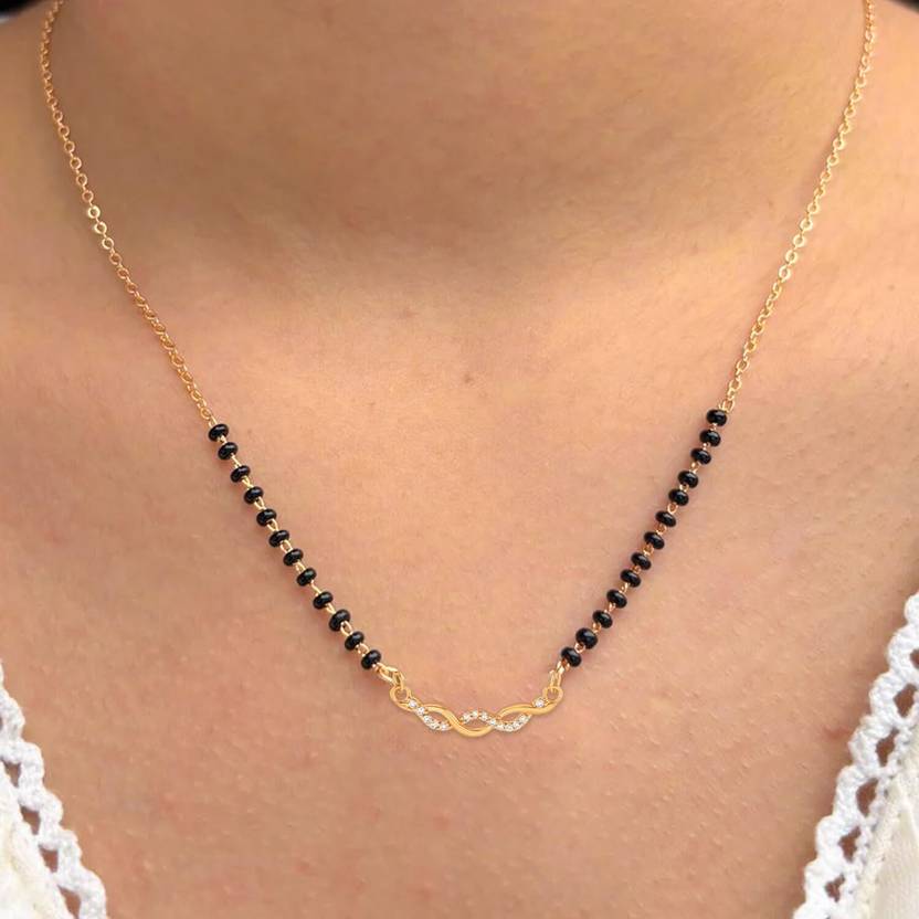 18K Gold Plated Twisted Design Black Beads Mangalsutra Tanmaniya Necklace Chain For Women