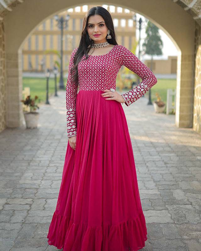 Embroidered Georgette Stitched Anarkali Gown (Black)