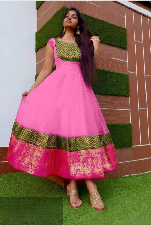 Self Design Jacquard Stitched Flared/A-line Gown (White)