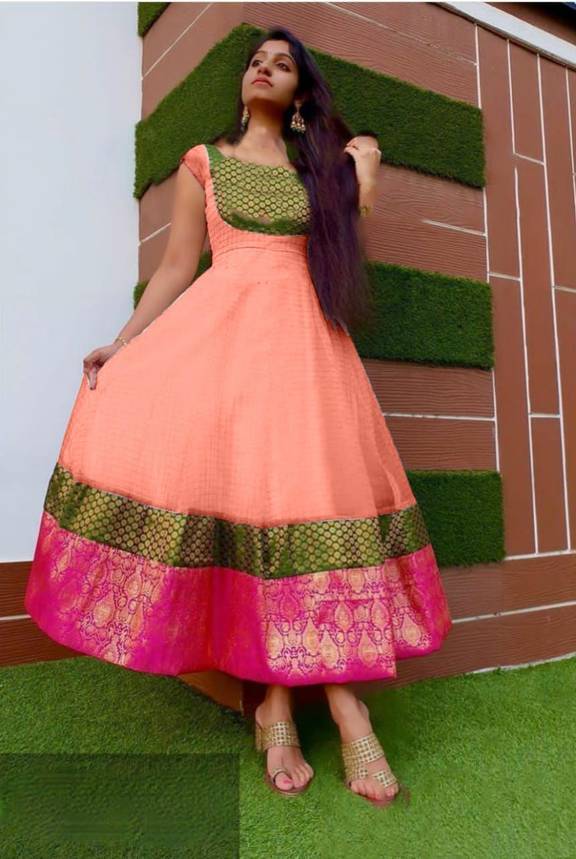 Self Design Jacquard Stitched Flared/A-line Gown (White)