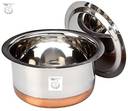 Thathera Stainless Steel Utensils Copper Bottom Tope Set with Lid/Steel Copper Tope Set with Lids/Pot and Pan Set/Milk Pan with Lids/Milk Pot with Lids/Kitchen Serving/Cookware Set/Serving Set. Tope with Lid 1 L capacity 50 cm diameter (Stainless Steel, Copper)