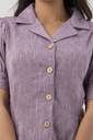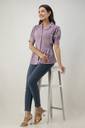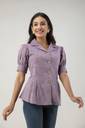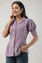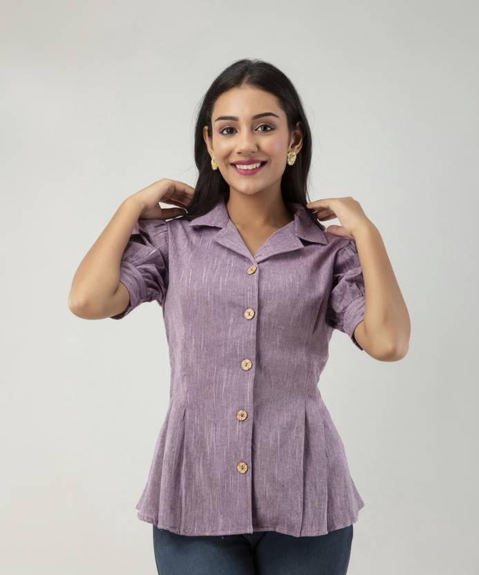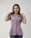 This shirt-style top includes a button closure that provides convenience and style. Featuring a collared neck, it lends a structured look, enhancing its smart and versatile appeal. And, boasting a comfortable fit, this top ensures ease of movement without feeling tight or restrictive. Also, with short puff sleeves, it adds a subtle touch of style while maintaining simplicity. Hence, owing to its carefully designed features, this top offers a blend of functionality and elegance, ideal for daily styling.