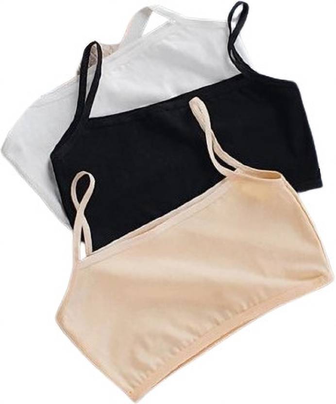Pack of 3 Solid Beginner Bras for Girls/Kids Half Slip & Camisole.Comfortable Strecthy Cotton
