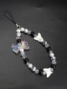 thejewel Black & White Beaded Phone Charm with Butterfly and Bow Design Phone Charm (Multicolor)