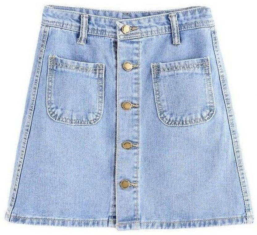 Thekids Solid Girls Straight Blue Skirt