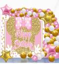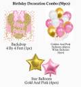 ?PACKAGE: The decorations set includes: 4ft x 4ft backdrop banner made of high-quality star flex, 40 Latex Balloons Gold and Pink, 5 pcs White Balloons, 4 pcs Gold and Pink Star Balloons.