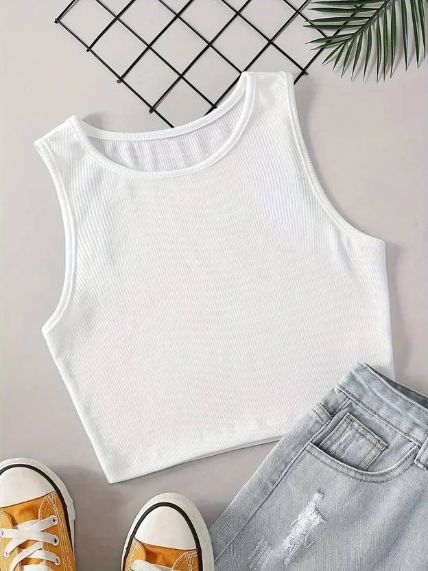 Lightweight and Breathable: This sleeveless ribbed tank top is crafted from lightweight, breathable fabric for optimal comfort and ventilation. Material: 95% Cotton 5% Polyester, Pattern: Solid. Sleeve: Sleeveless, Neck: Round Neck. Fit Type: Slim Fit, Closure: Pull On; Details: Crop Top, Ribbed, Tank Top