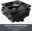 【Compatibility】The CPU cooler socket supports: Intel: 1150/1551/1155/1156/1200/1700/17XX/2066/2011; AMD: AM4 AM5; Appropriate mounting plates or hardware are included for different CPU socket platforms.