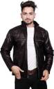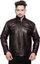 Men Solid Leather Jacket