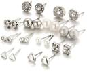 TheVineGirl TheVineGirl Combo of 12 Pair Silver Plated Heart Triangle Round Pearl Stud Alloy Stud Earring