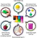 VARIETY:- Variety of colors and choices:12 bright and vivid colors which will develop the baby's color awareness, mix colors as per your imagination. Air-dries to a smooth, resilient finish, usually within 24 hours. The cool thing about the clay is when it is rolled like a ball it will bounce like a rubber ball.