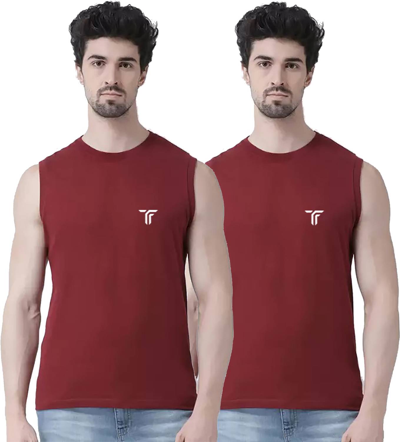 • Maroon And Dark Grey Colour Gym Vest For Men