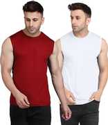 • Maroon And White Colour Gym Vest For Men
