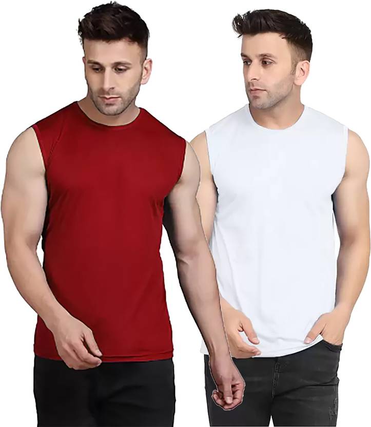 Maroon And White Colour Gym Vest For Men