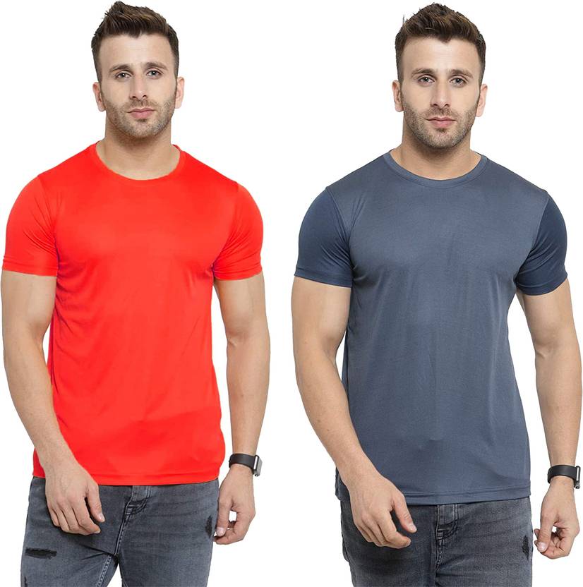 Think Tech Pack of 2 Men Solid Round Neck Polyester Red, Grey T-Shirt
