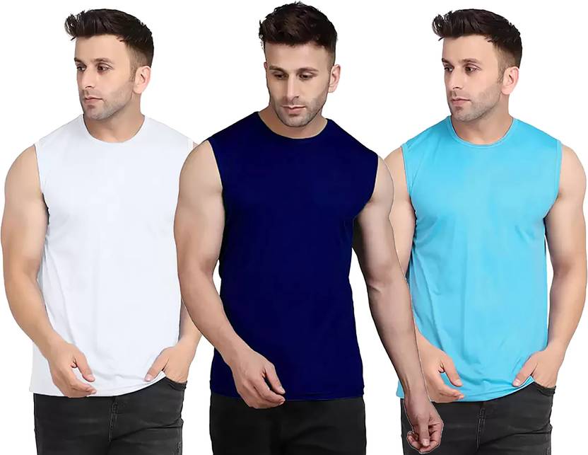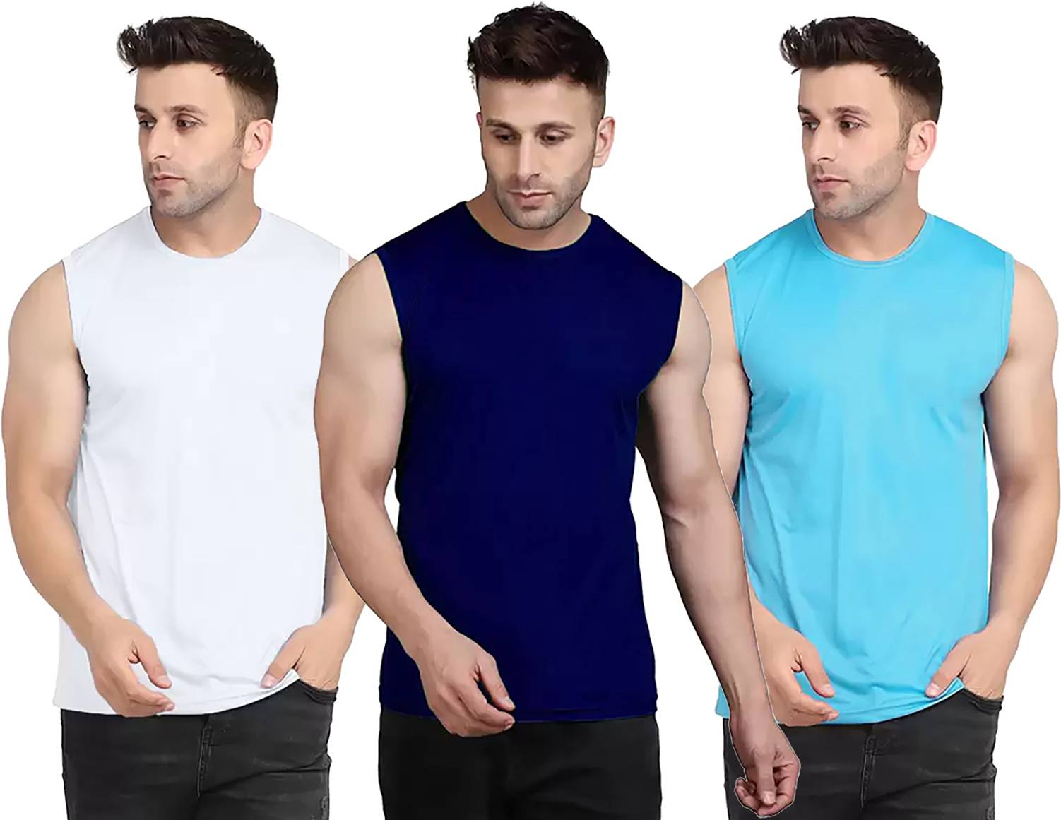 White And Neavy Blue And Sky Blue Colour Gym Vest For Men