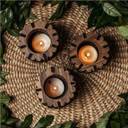 THINKARTLY CHLOE TEALIGHT HOLDER Wooden Tealight Holder Set (Brown, Pack of 3)